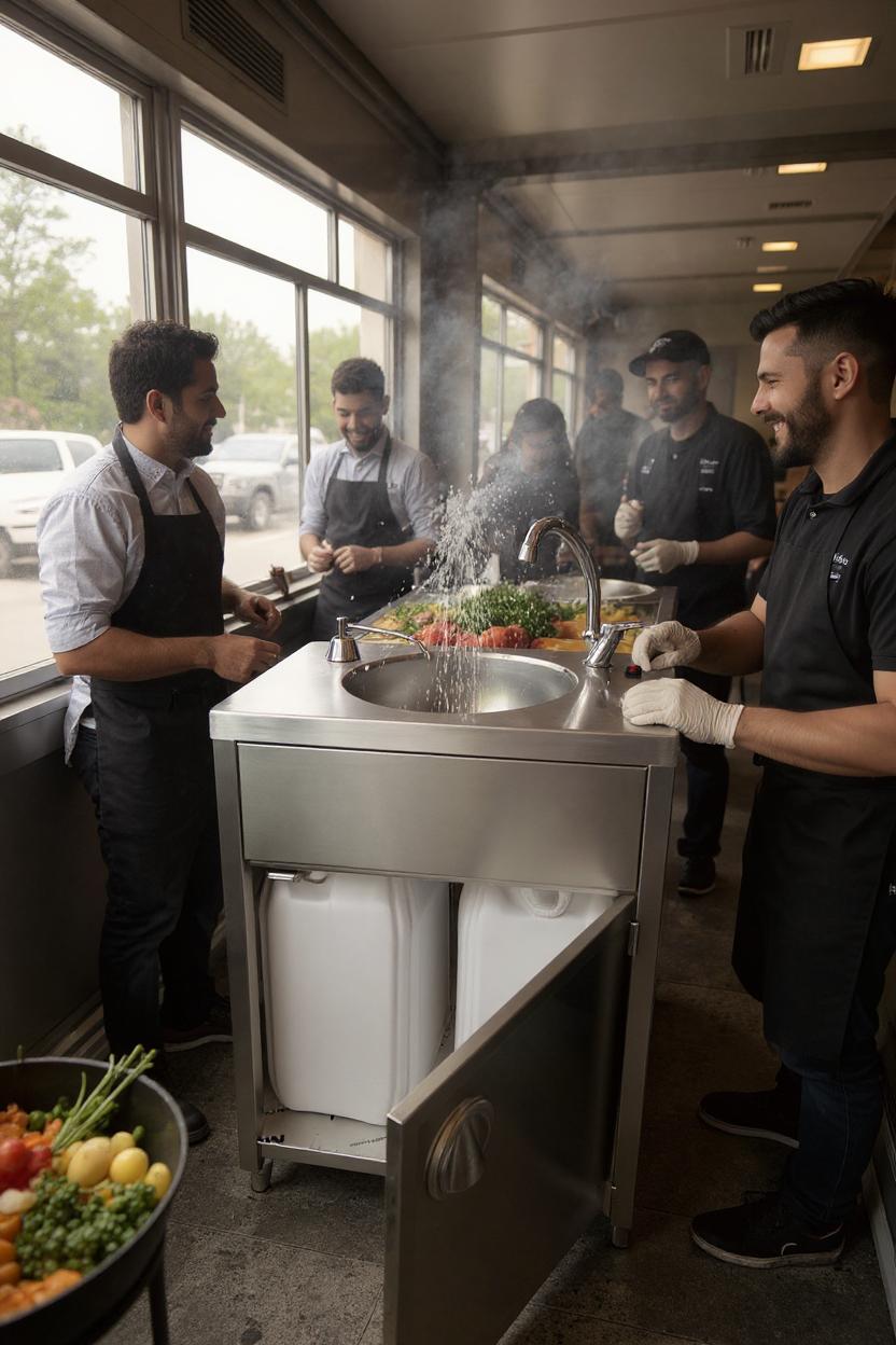 Stainless Steel Portable Sink with Hydro Pump | Rolling Hand Wash Station for Salons, Clinics, Events | Adjustable Faucet | Compact & Modern Design